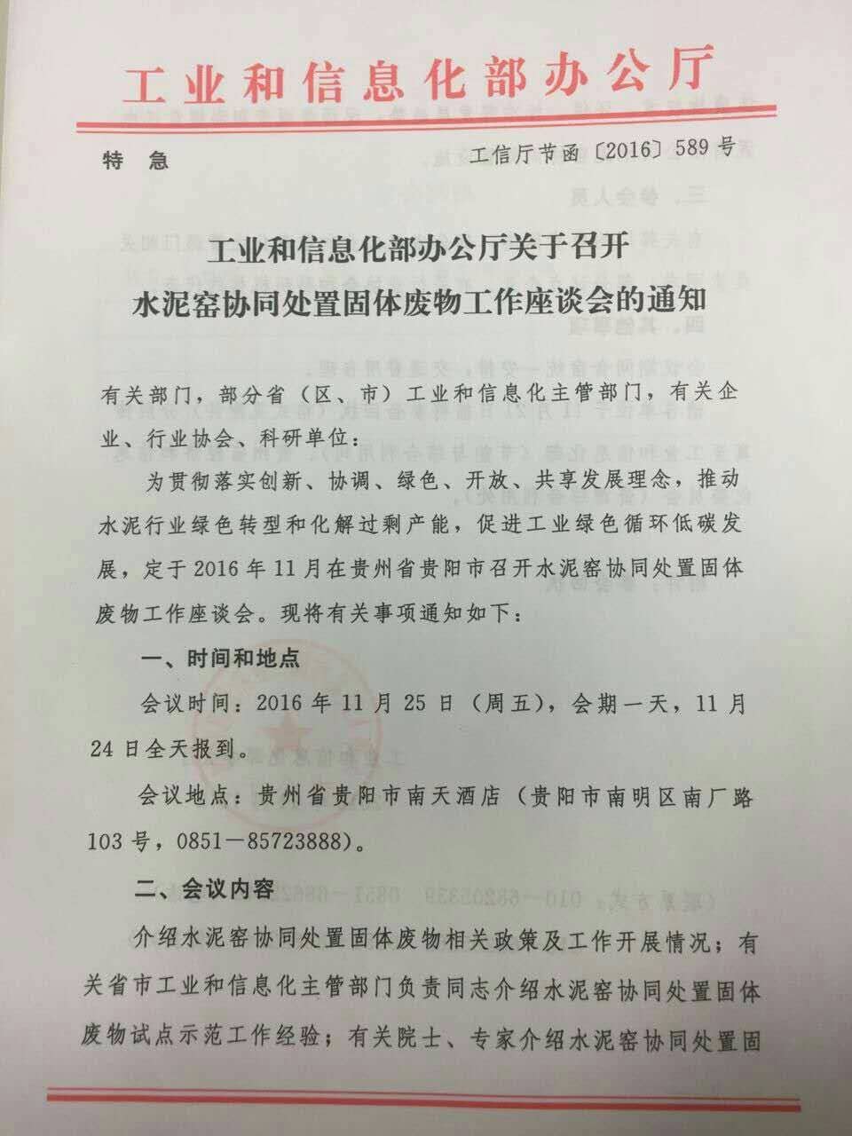水泥窯協(xié)同處置工業(yè)廢物工作座談會的通知