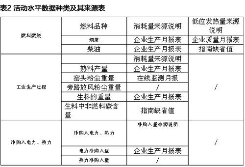水泥企業(yè)涉及到的所有活動(dòng)水平數(shù)據(jù)種類及來源詳見表2