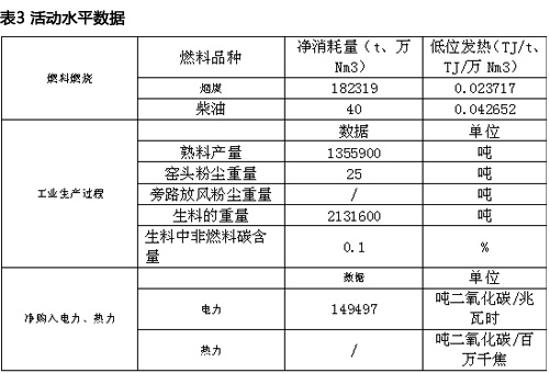 水泥企業(yè)活動(dòng)水平數(shù)據(jù)詳見表3