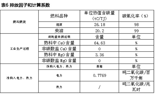 水泥企業(yè)二氧化碳排放涉及的排放因子和計(jì)算系數(shù)類別見表4。