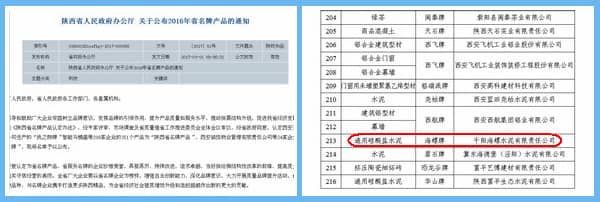 近日,陜西省人民政府辦公廳下發(fā)《關于公布2016年省名牌產(chǎn)品的通知》中,千陽海螺水泥有限責任公司生產(chǎn)的“海螺”牌P.O42.5水泥再次榮獲“陜西省名牌產(chǎn)品”榮譽稱號。