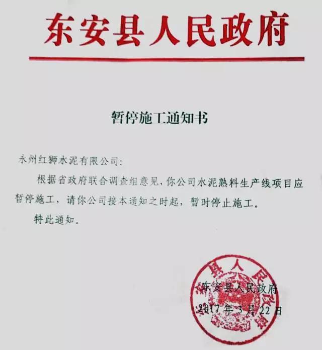 聯(lián)合調(diào)查組組長、省經(jīng)信委副巡視員劉輝最后表態(tài),將以最快速度向有關(guān)領(lǐng)導(dǎo)報告調(diào)查情況,并在調(diào)查結(jié)論出來之前,將要求當(dāng)?shù)卣?zé)成永州紅獅水泥項目暫時停止建設(shè)。