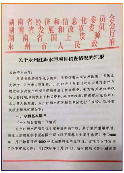 圖:關(guān)于永州紅獅水泥項(xiàng)目核查情況匯報