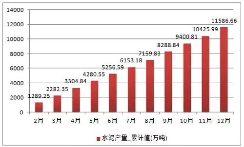2016年1-12月湖北省水泥累計產(chǎn)量
