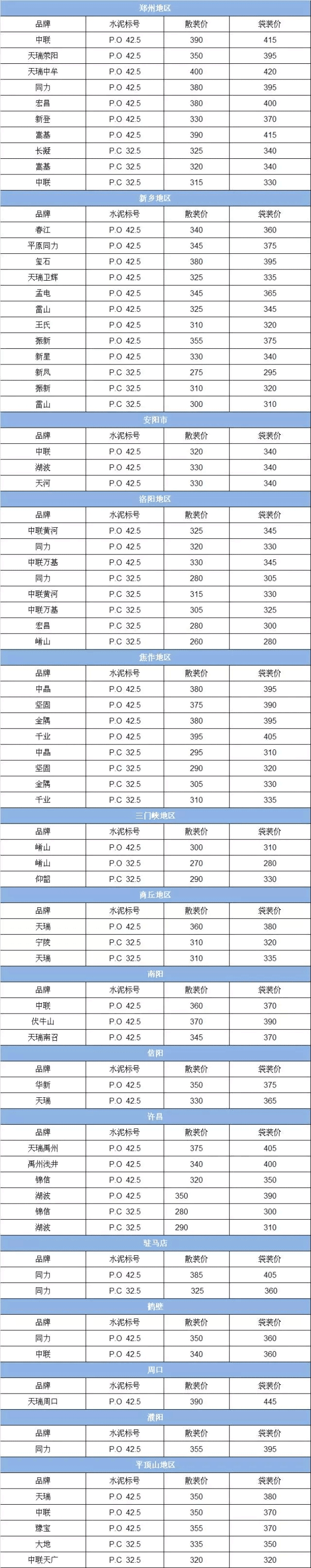 附: 河南省區(qū)域水泥市場(chǎng)近期價(jià)格一覽