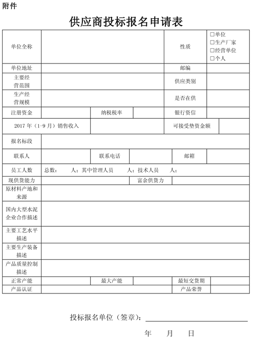 1、供應商可以自主報名,經貴州西南水泥招標工作組資質預審合格供應商方能受邀參加招標。
