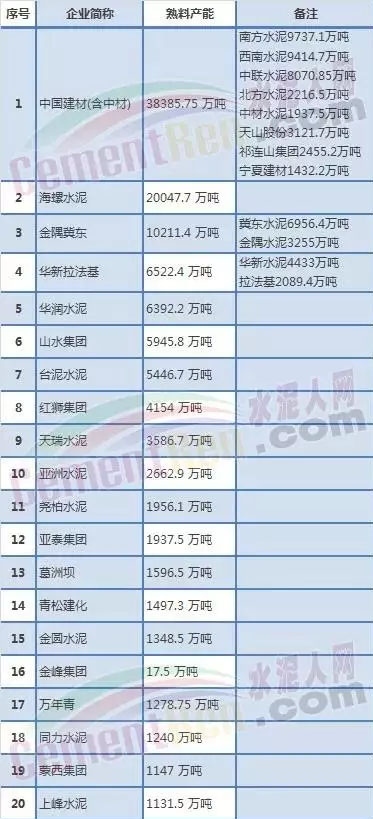 盤點,熟料產(chǎn)能前二十家企業(yè),絕大部分是國企、央企也有部分低能耗技術相對領先的民營企業(yè),這二十家企業(yè)在今年這“水泥漲價潮”中算是賺“Hai”了。