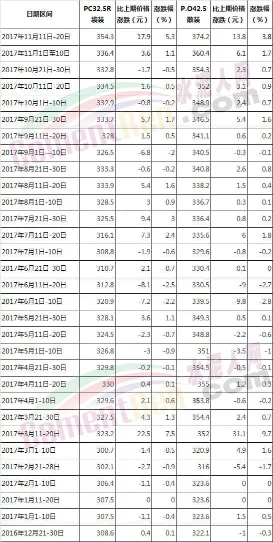目前,北方多數(shù)地區(qū)已進(jìn)入寒冷冬季,下游基建停工影響水泥銷量,而導(dǎo)致水泥價(jià)格無大幅上調(diào)趨勢。但是為保證來年開春的價(jià)格基礎(chǔ),各家企業(yè)通常不會大幅降價(jià),降價(jià)的原因亦可能是為了年底之前再沖一次量。