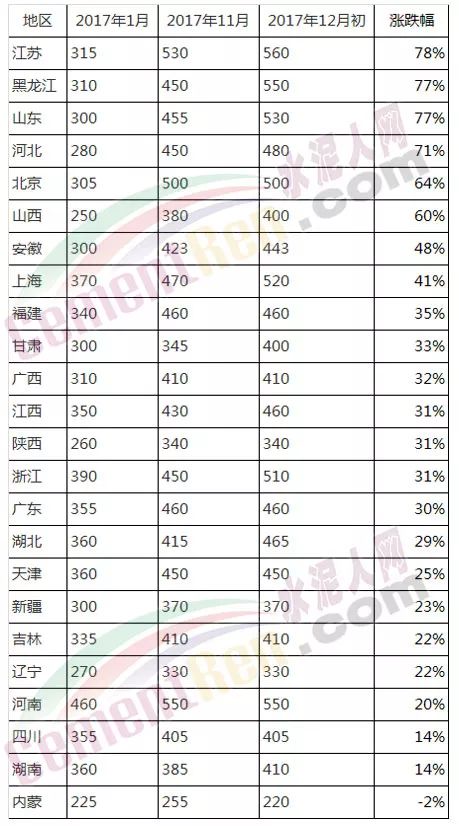 綜上所述,1-11月份的價(jià)格走勢,總體為上漲趨勢,12月份部分地區(qū)因下游需求不足,有小幅回落,但基本面仍處于高位運(yùn)行階段。部分區(qū)域銷售負(fù)責(zé)人稱:2017年價(jià)格基本定型,變動不會太大,來年3月份錯峰生產(chǎn)結(jié)束,可能會面臨一小波價(jià)格回調(diào),回調(diào)力度不會太大。