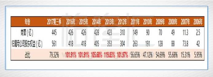 而投資者一直關(guān)注的商譽(yù)問題,通過合并注資,使得占?xì)w屬母公司股東權(quán)益的比例從79.3%的高值下降到55.5%,返回到2008-2011年的相對低階水平,抵抗商譽(yù)潛在風(fēng)險的實(shí)力得到加強(qiáng)。