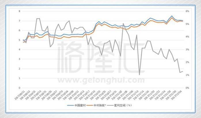 我們發(fā)現(xiàn)有不少投資者認(rèn)為,高的沽空數(shù)據(jù)是由于套利操作致使,根據(jù)2017年9月8日周五晚公布的中國建材和中材股份吸收合并的重組方案里表示每1股中材股份能換取0.85股的中國建材的新增股份。通過我們認(rèn)真研究發(fā)現(xiàn),中國建材和中材股份根據(jù)重組方案產(chǎn)生的套利操作空間已經(jīng)漸趨消失,在不考慮沽空成本和買賣傭金稅金,只有1%左右。