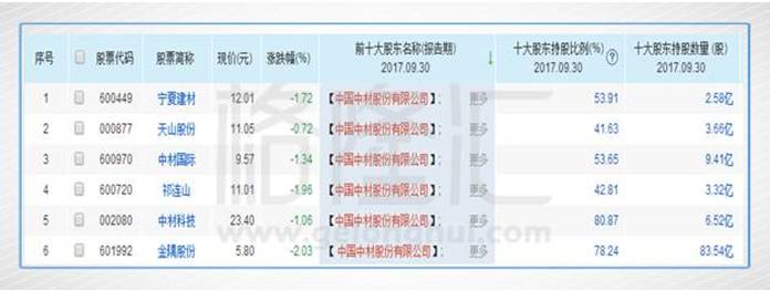 (備注:以上為中國建材集團(tuán)主要控股參股的九家A股上市公司,資本市場把它們統(tǒng)稱為“中材系”)
