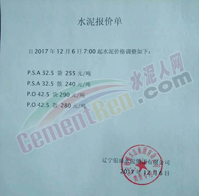 12月11日通知稱,根據(jù)市場(chǎng)行情,從11日起福建金牛(含子公司)水泥出廠單價(jià):銷往三明市區(qū)、沙縣、永安、明溪、清流、寧化、長(zhǎng)汀、將樂、泰寧、建寧、順昌片區(qū)袋裝各規(guī)格水泥出廠價(jià)在現(xiàn)行價(jià)格基礎(chǔ)上上調(diào)20元/噸,各規(guī)格散裝水泥上調(diào)30元/噸。銷往石城、寧都、瑞金片區(qū)袋裝各規(guī)格水泥出廠價(jià)在現(xiàn)行價(jià)格基礎(chǔ)上上調(diào)50元/噸、散裝各規(guī)格水泥上調(diào)40元/噸。其中石城縣源達(dá)建材有限公司袋裝各規(guī)格上調(diào)45元/噸,散裝各規(guī)格上調(diào)35元/噸。