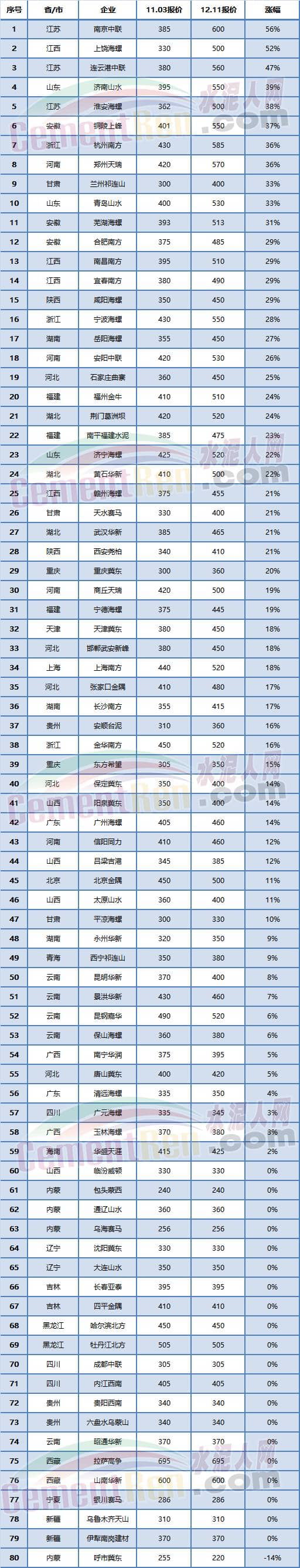 以上80家水泥企業(yè),僅內(nèi)蒙古呼和浩特冀東水泥不漲反降,降幅14%。據(jù)水泥人網(wǎng)了解,內(nèi)蒙古呼浩和特市冀東水泥公司生產(chǎn)部將于近期放假,PO42.5散裝水泥220元/噸的價(jià)格將持續(xù)到2018年3月15日開窯以后。