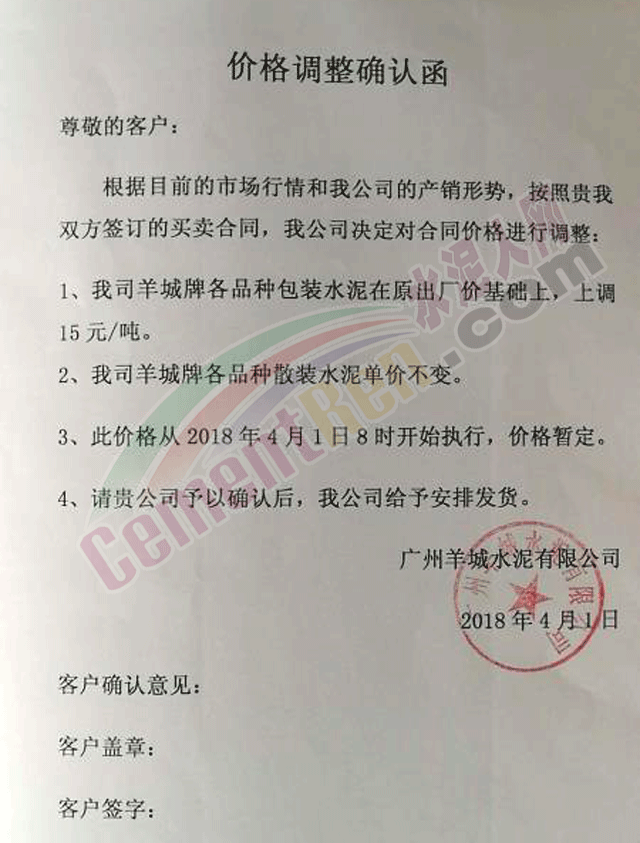 華南地區(qū)水泥企業(yè)提價(jià)通知如下: