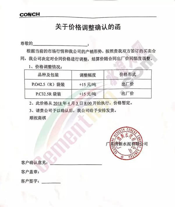 廣東清新水泥調(diào)價(jià)函