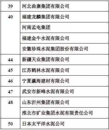 2018年中國(guó)水泥熟料產(chǎn)能50強(qiáng)