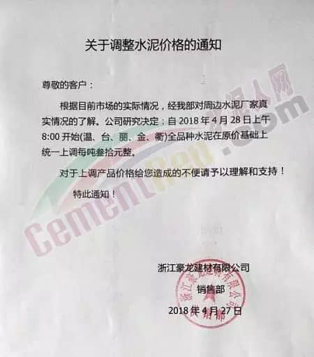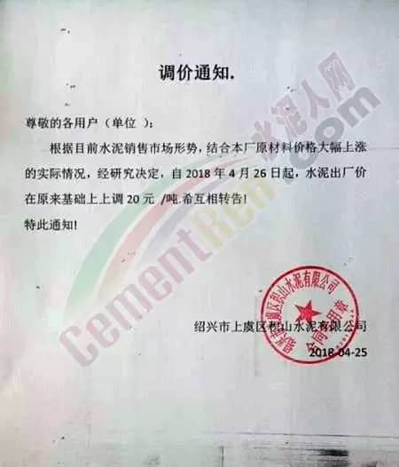 都說一個(gè)水泥銷售就是抵一個(gè)情報(bào)專家,從這張?zhí)醿r(jià)通知可見一斑。