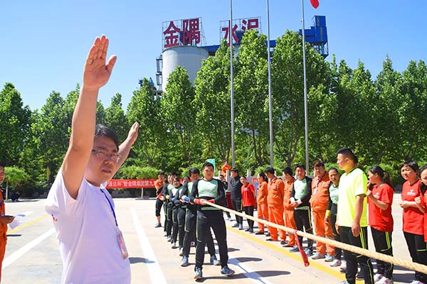 比賽嚴(yán)格按照九運(yùn)會拔河比賽規(guī)則要求,開幕式前對每一位隊(duì)員的體重進(jìn)行了嚴(yán)格測量,確保比賽的公平和公正。開幕式入場式中各公司代表隊(duì),喊著響亮的口號,邁著整齊自信的步伐,走出了金隅人的自信和風(fēng)采!隨后舉行了隆重的升旗儀式,所有人員神色莊嚴(yán)地面向升旗臺,伴隨著雄壯的國歌聲響起,大家的目光隨著國旗的緩緩上升而移動。整個升旗儀式簡短而隆重。贊皇金隅黨委副書記、紀(jì)委書記、工會主席郭書芬主持了開幕式,黨委書記常延輝代表全體干部職工致歡迎詞。冀中區(qū)域組長單位鼎鑫——靈壽區(qū)域公司黨委副書記、紀(jì)委書記、工會主席武相艷講話,比賽總裁判長宣布拔河比賽規(guī)則,裁判員代表與運(yùn)動員代表分別宣誓,贊皇金隅經(jīng)理孫建勛宣布比賽開始。