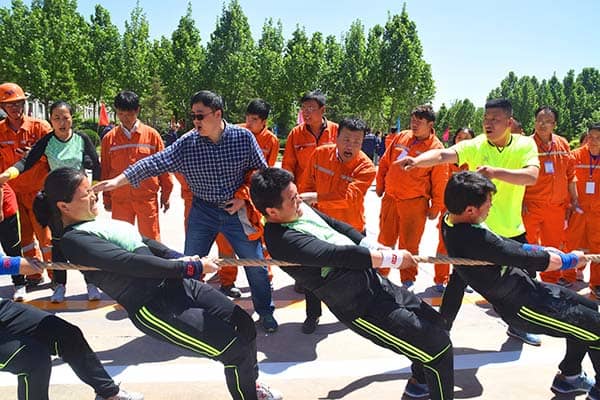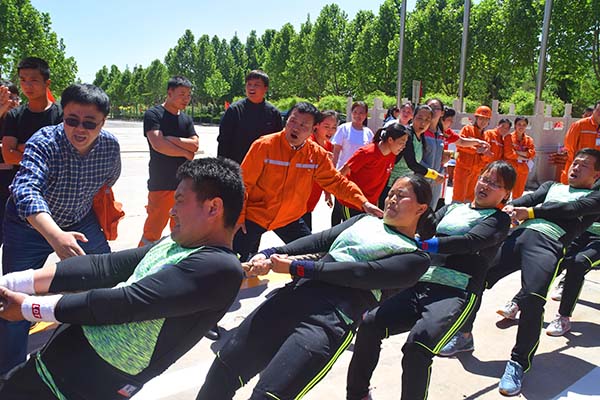 正式比賽前,現(xiàn)場工作人員帶領(lǐng)大家進(jìn)行了拉伸運(yùn)動。當(dāng)比賽的哨聲響起,各公司的隊(duì)員們雙手緊握長繩,口中一齊高呼著“一二、一二”,團(tuán)結(jié)一心,憋足了勁拼命向后拉,各公司啦啦隊(duì)為比賽隊(duì)員吶喊加油,哨子聲、吶喊聲,此起彼伏,飄蕩在贊皇金隅辦公樓廣場上空。經(jīng)過激烈的角逐,最終,鼎鑫——靈壽區(qū)域公司力壓群雄拔得頭籌取得冠軍,易縣——淶水區(qū)域公司榮獲亞軍,贊皇金隅公司榮獲季軍。