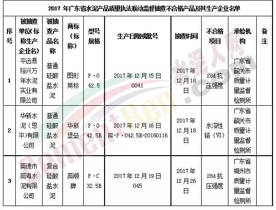 4月28日,廣東省質(zhì)量技術(shù)監(jiān)督局官網(wǎng)發(fā)布2017年廣東省水泥產(chǎn)品質(zhì)量執(zhí)法聯(lián)動監(jiān)督抽查結(jié)果。其中發(fā)現(xiàn)不合格的項目涉及“水溶性鉻(Ⅵ)”“28天抗壓強度”兩個項目。