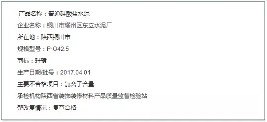 3月28日,江蘇省工商行政管理局官網(wǎng)公布了上年第一階段水泥抽檢結(jié)果,被檢測的42組樣品中,不合格組9個,不合格率為21.4%。不合格項目為強度不夠和氯離子超標。