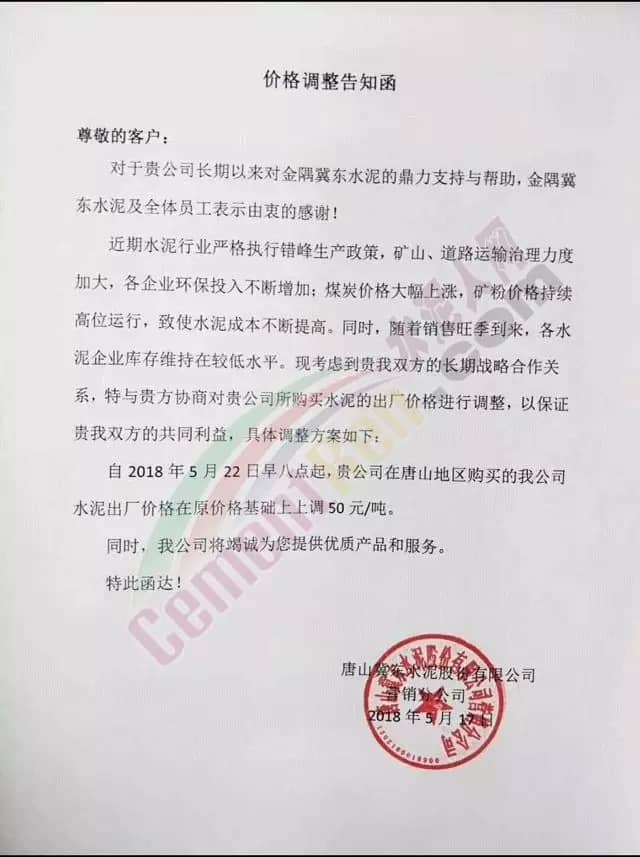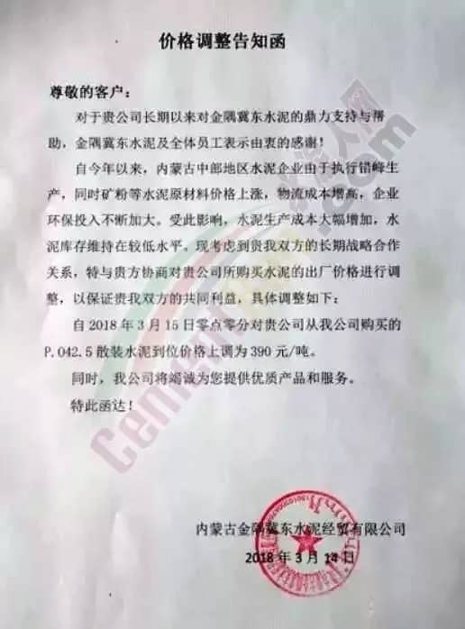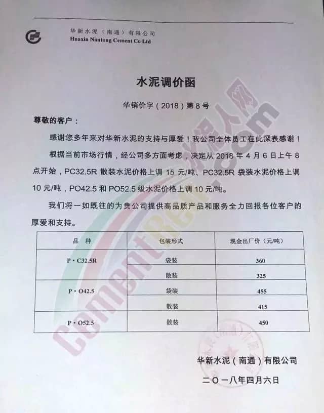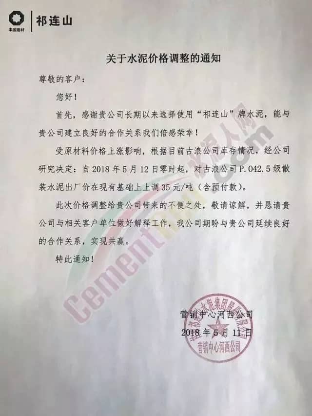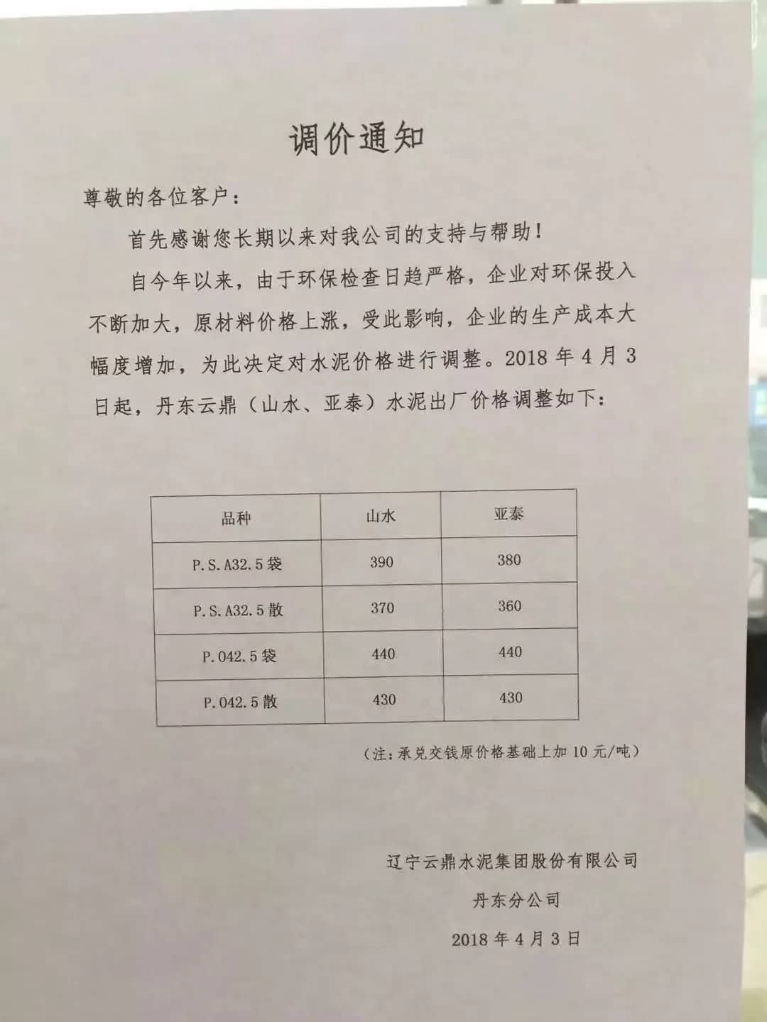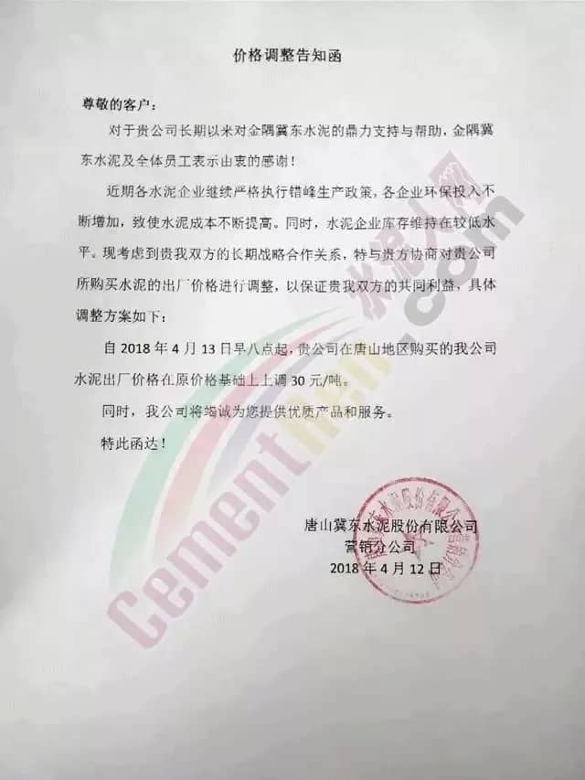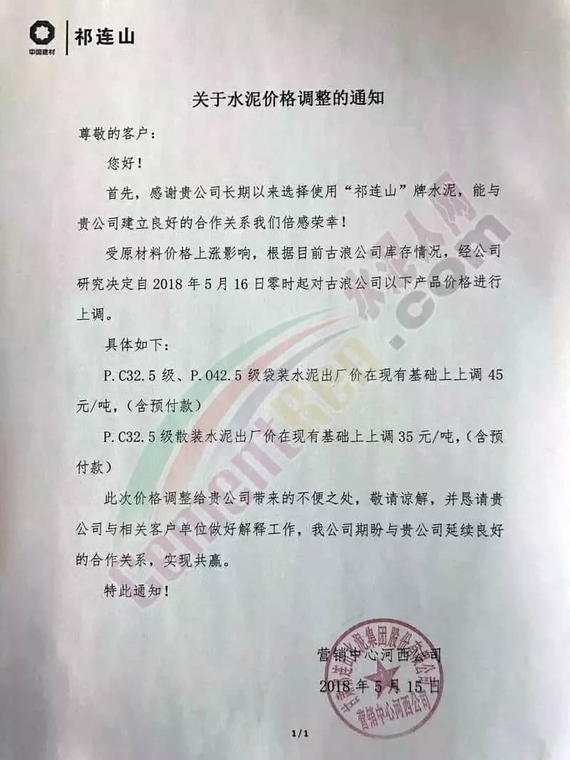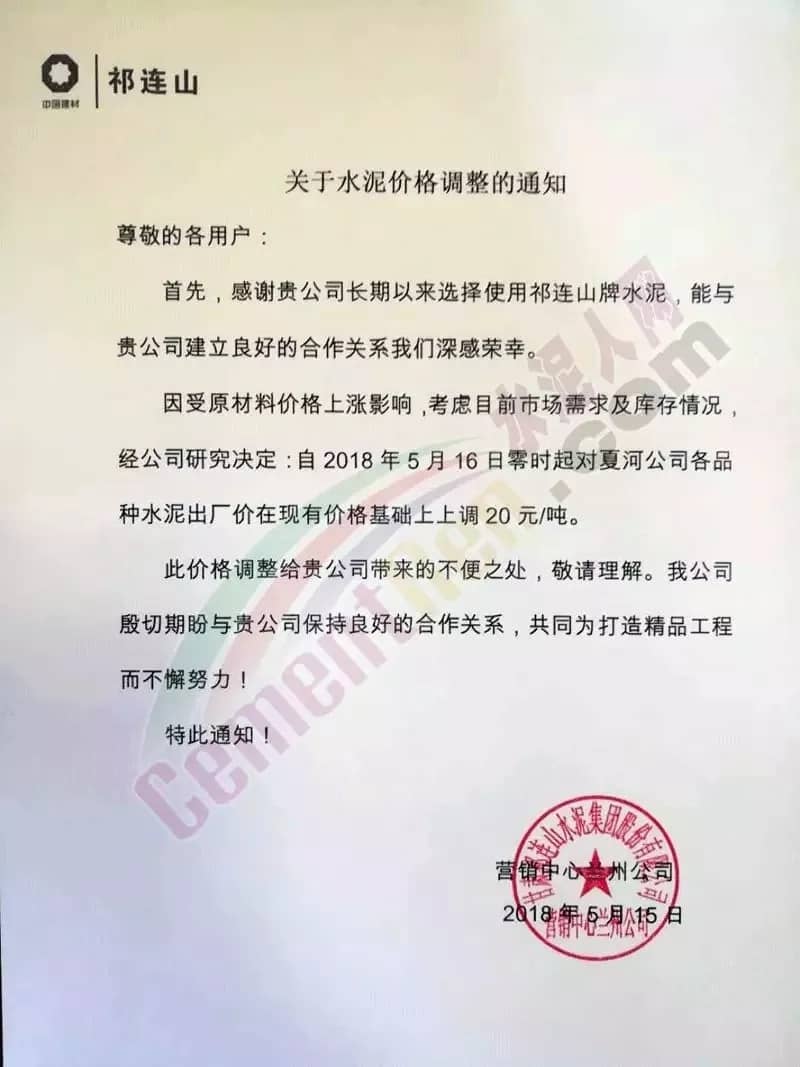 近一周來(lái)各地水泥企業(yè)頻發(fā)漲價(jià)通知,通知下游客戶(hù)上調(diào)水泥價(jià)格。此前相關(guān)市場(chǎng)分析人士曾預(yù)測(cè),2018年的水泥價(jià)格或?qū)⒊綒v史最高價(jià)。