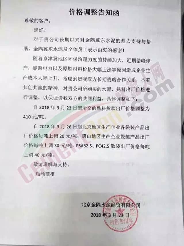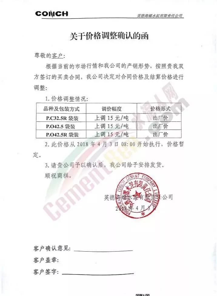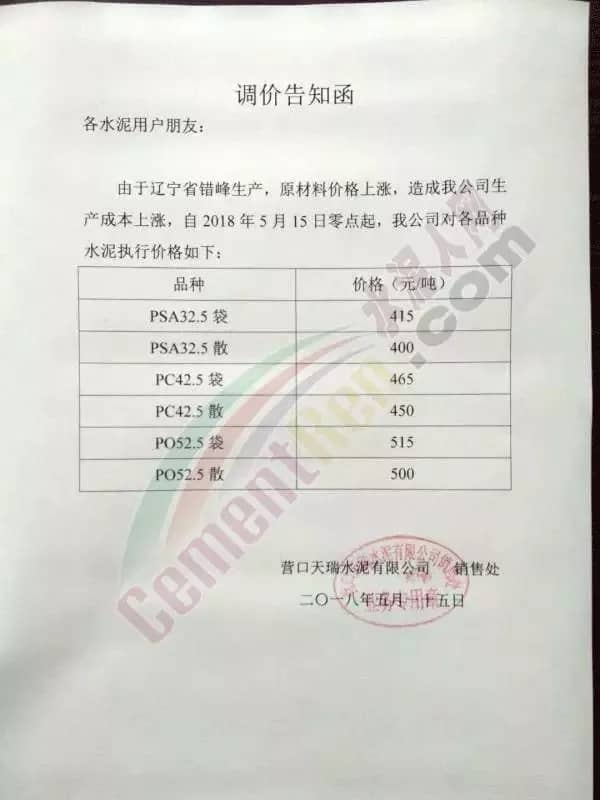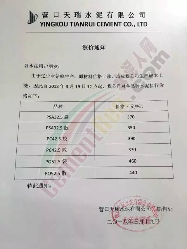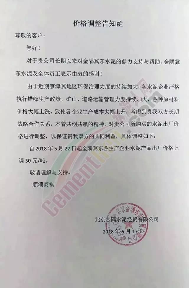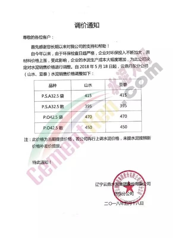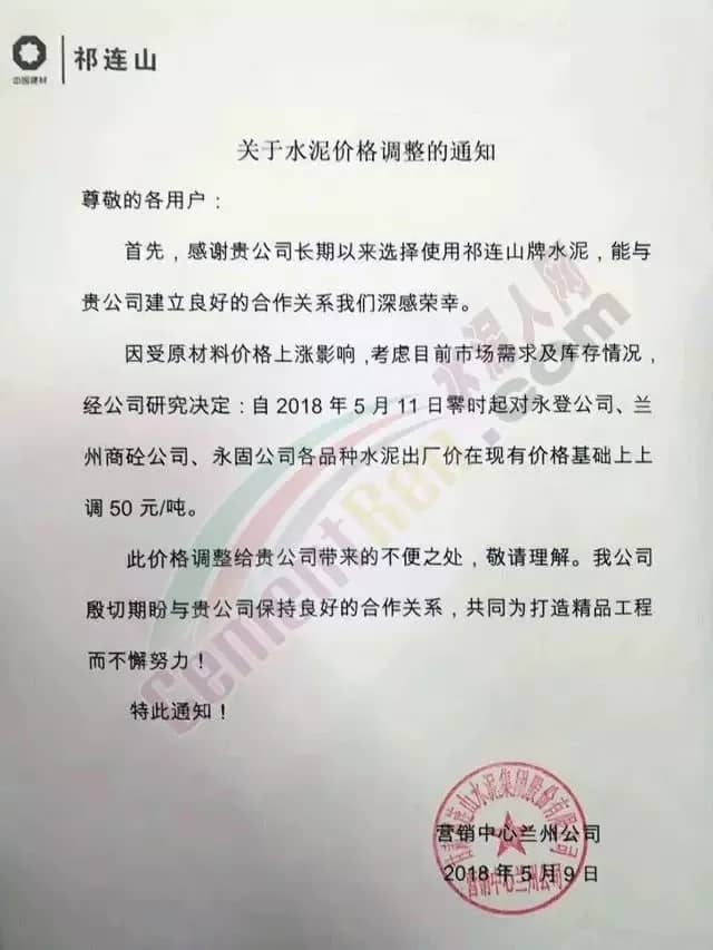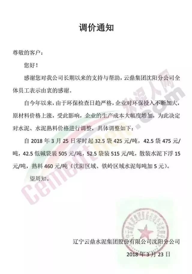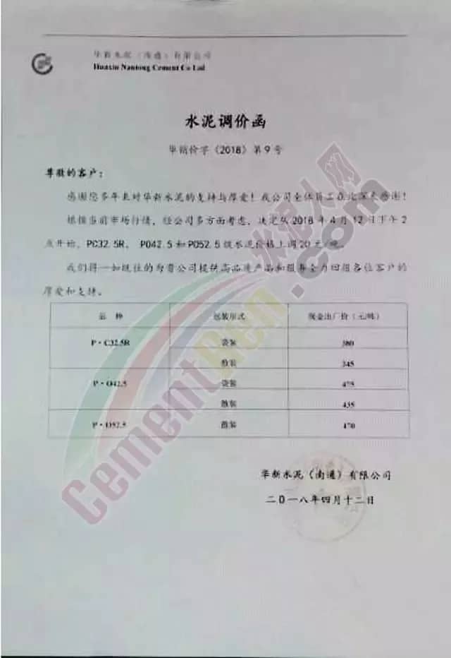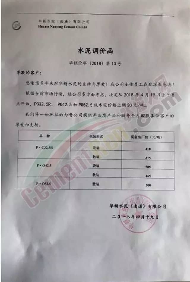 近一周來(lái)各地水泥企業(yè)頻發(fā)漲價(jià)通知,通知下游客戶(hù)上調(diào)水泥價(jià)格。此前相關(guān)市場(chǎng)分析人士曾預(yù)測(cè),2018年的水泥價(jià)格或?qū)⒊綒v史最高價(jià)。