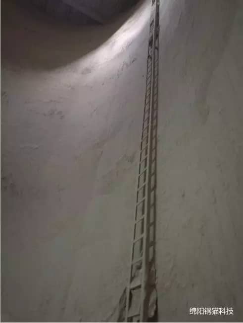 該庫(kù)直徑18米,庫(kù)容量10000噸,5年未清理,庫(kù)內(nèi)物料結(jié)垢嚴(yán)重。