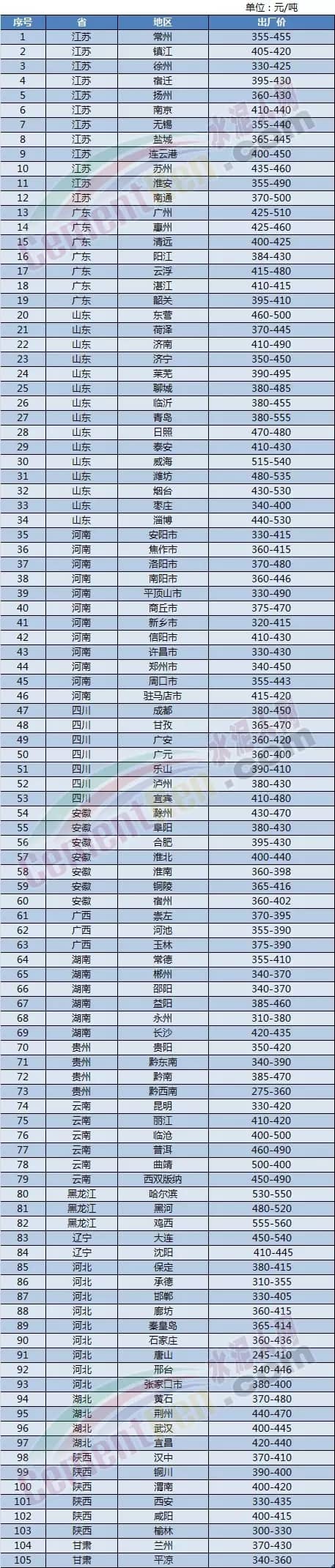 以上數(shù)據(jù)來(lái)源:水泥人網(wǎng)信息中心。此數(shù)據(jù)僅供參考,如與實(shí)際成交價(jià)格不符請(qǐng)以實(shí)際成交為準(zhǔn)。