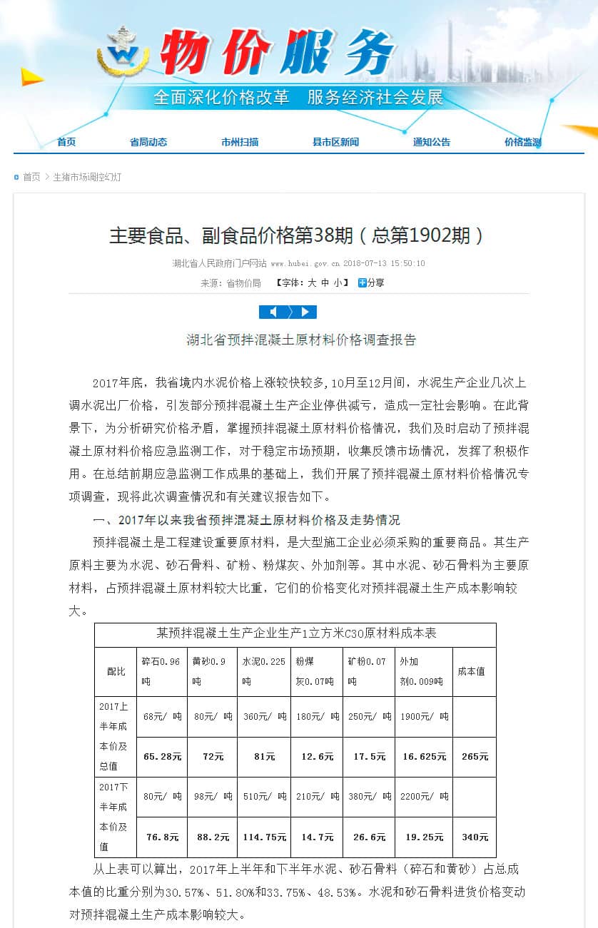 2018年7月13日,湖北省人民政府網(wǎng)站發(fā)布《湖北省預(yù)拌混凝土原材料價格調(diào)查報告》,報告稱2017年底,湖北省境內(nèi)水泥價格上漲較快較多,10月至12月間,水泥生產(chǎn)企業(yè)幾次上調(diào)水泥出廠價格,引發(fā)部分預(yù)拌混凝土生產(chǎn)企業(yè)停供減虧,造成一定社會影響。