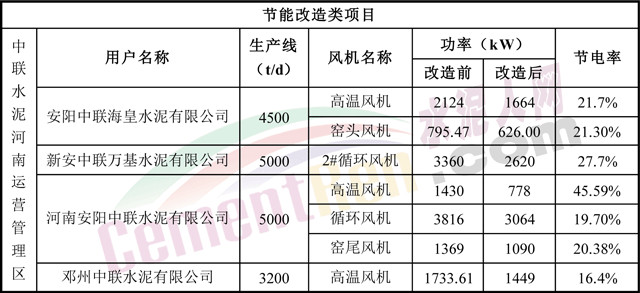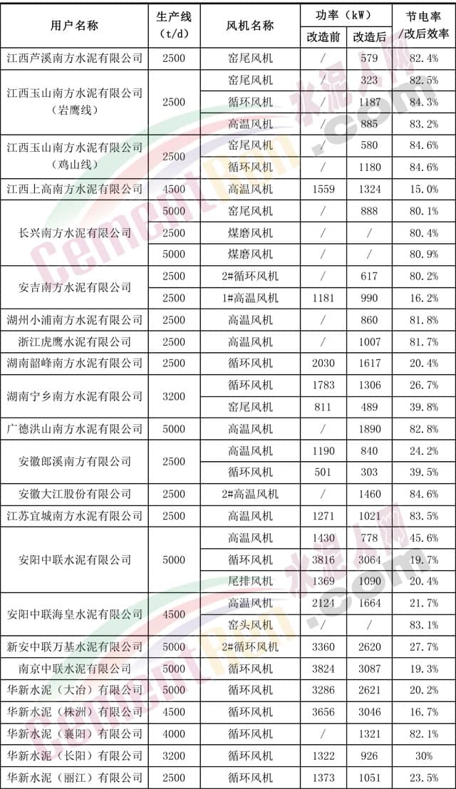 上海瑞晨水泥行業(yè)風(fēng)機(jī)節(jié)能改造業(yè)績(jī)(部分)