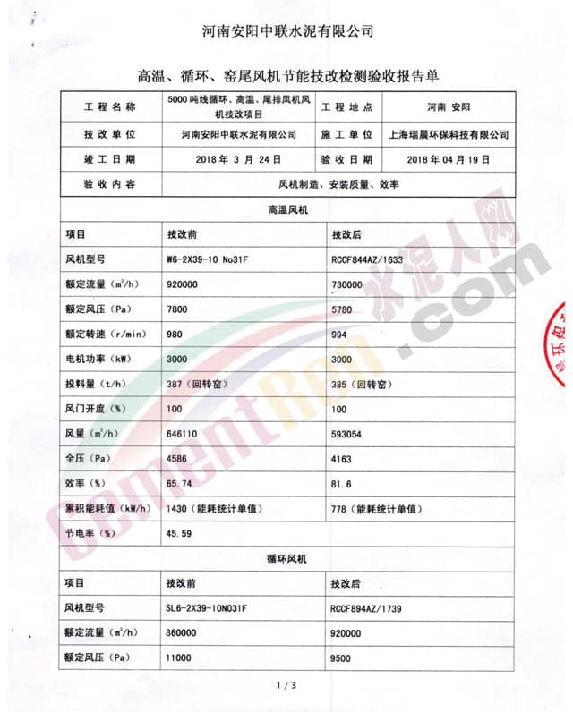 據(jù)水泥人網(wǎng)了解,南方水泥、中聯(lián)水泥、華新水泥、葛洲壩水泥、金隅水泥、紅獅水泥、天瑞水泥等龍頭企業(yè)均采用了上海瑞晨環(huán)??萍加邢薰?以下簡(jiǎn)稱“瑞晨環(huán)保”)的高效風(fēng)機(jī)綜合節(jié)能解決方案,改造后節(jié)能效益顯著,得到高度認(rèn)可與好評(píng),準(zhǔn)備在集團(tuán)內(nèi)廣泛推廣。
