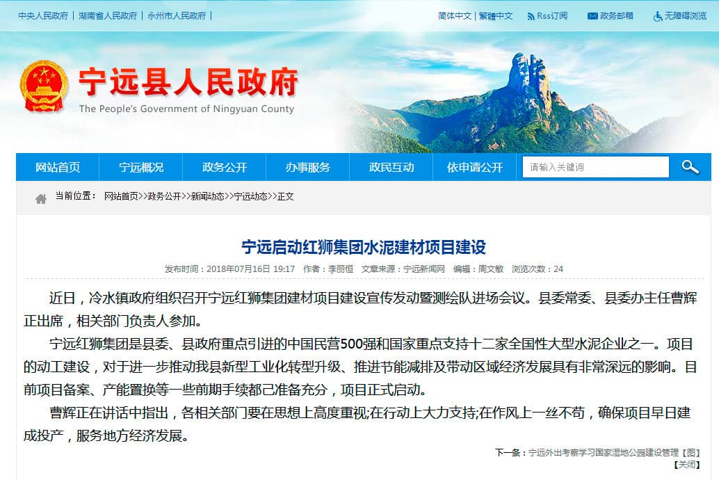 據(jù)水泥人網(wǎng)了解,去年10月份,寧遠(yuǎn)縣政府就與紅獅控股集團(tuán)舉行了該項(xiàng)目簽約儀式。浙江紅獅控股集團(tuán)副總經(jīng)理章經(jīng)忠,寧遠(yuǎn)縣縣委書記劉衛(wèi)華,縣委副書記,縣長唐何共同出席簽約儀式。