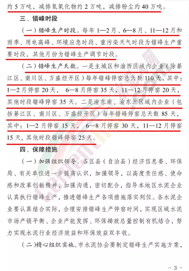 主城區(qū)和渝西區(qū)域內企業(yè)(除綦江區(qū)、南川區(qū)、萬盛經開區(qū))每年錯峰停窯總天數110天,其中:1-2月停窯20天,6-8月停窯35天,11-12月停窯20天,其他時段錯峰停窯35天;