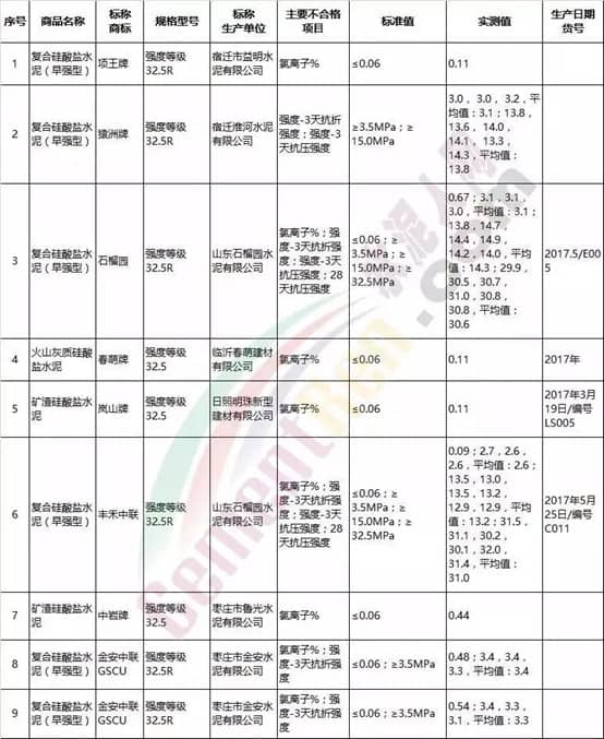 江蘇省工商行政管理局官網(wǎng)公布了上年第一階段水泥抽檢結(jié)果,被檢測(cè)的42組樣品中,不合格組9個(gè),不合格率為21.4%。不合格項(xiàng)目為強(qiáng)度不夠和氯離子超標(biāo)。
