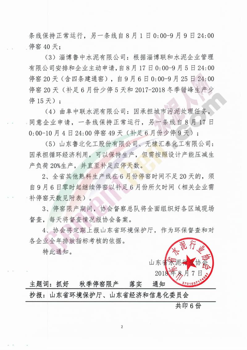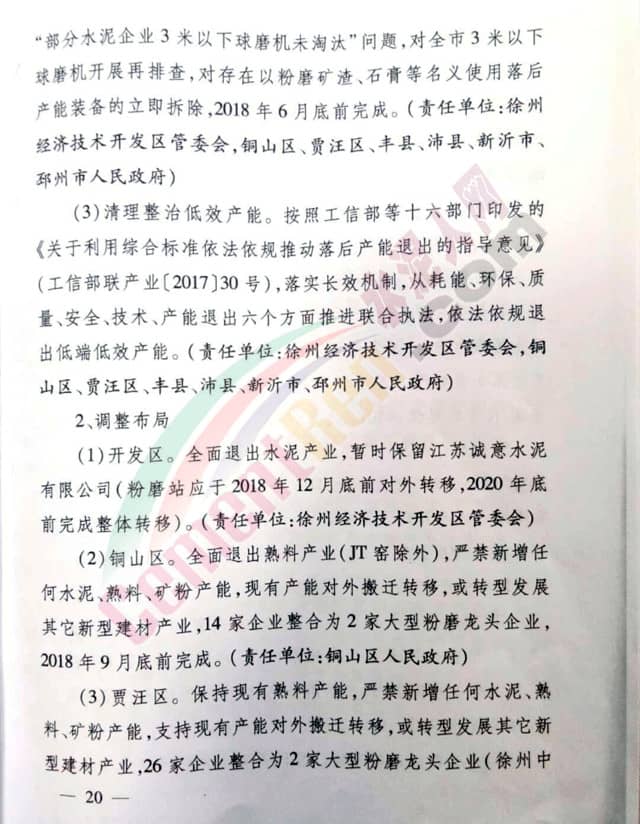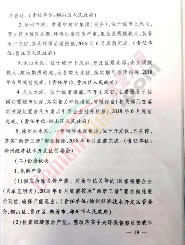 方案針對熟料板塊的五家企業(yè),以及粉磨板塊多家企業(yè)實施轉(zhuǎn)型升級分階段退出以及“兩斷三清”徹底拆除等政策。并限制時間,6月底或9月底完成。