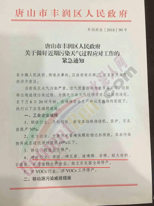 近期唐山地區(qū)政府多次發(fā)文要求水泥企業(yè)停限產(chǎn)。先是唐山豐潤區(qū)發(fā)布文件要求豐潤區(qū)所屬水泥企業(yè)全部停產(chǎn)。