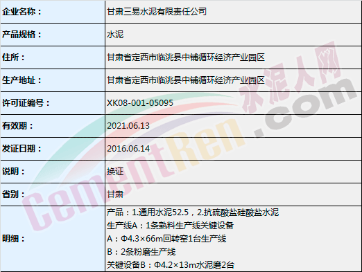 三易水泥生產(chǎn)許可證信息