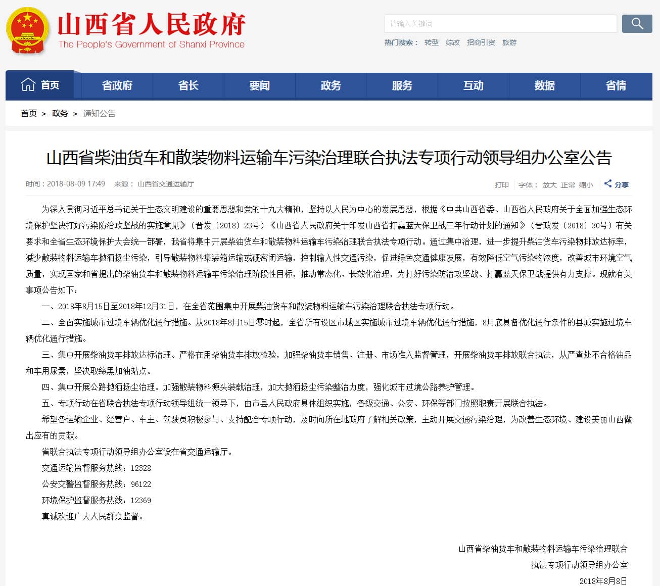 針對交通污染的突出問題,運城市鹽湖區(qū)人民政府決定從即日起,禁止重型柴油貨車和散裝物料運輸車在運城市建成區(qū)內通行,過境車輛優(yōu)化通行線路繞行高速公路行駛?,F(xiàn)通告如下: