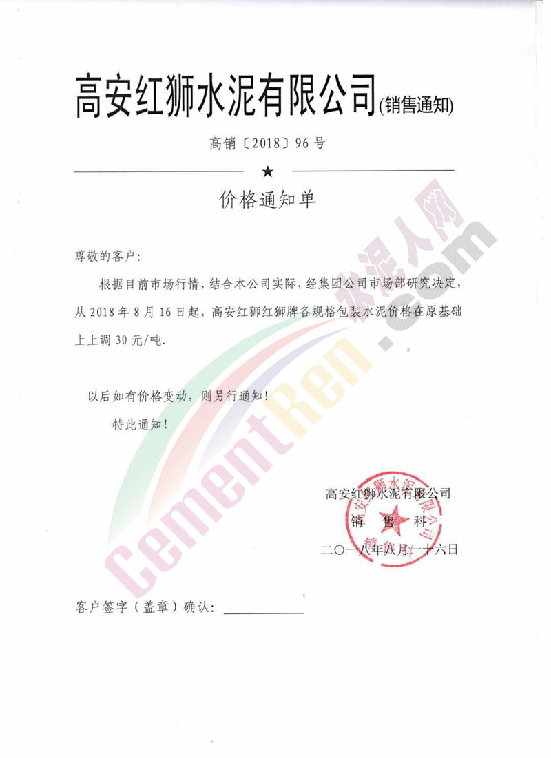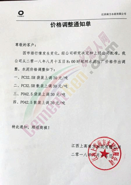 【水泥人網(wǎng)】繼河南水泥漲價,湖北部分企業(yè)一口氣漲了65元/噸之后,江西區(qū)域龍頭企業(yè)南方水泥、海螺水泥、紅獅水泥、亞東水泥等發(fā)布提價通知稱上調水泥價格,漲幅在30元/噸。