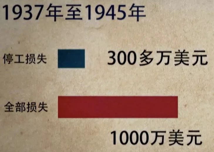 據(jù)戰(zhàn)后1946年的數(shù)據(jù)統(tǒng)計,從1937年至1945年,僅工廠停工這一項,損失就高達300多萬美元。