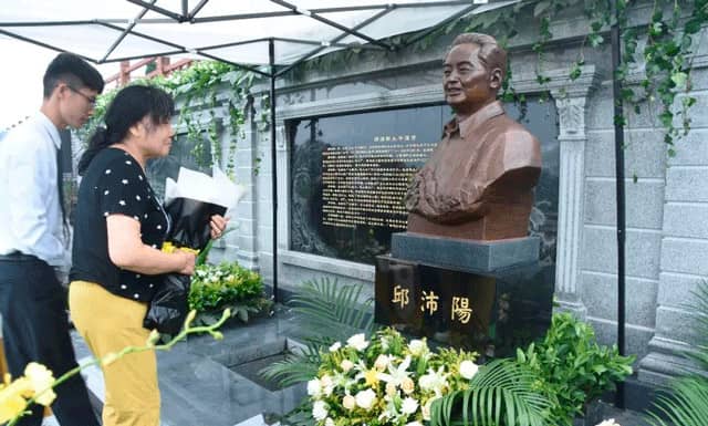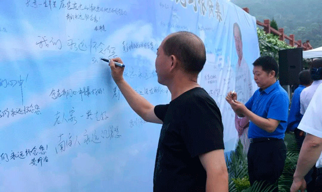 上午9時18分,下葬儀式正式進(jìn)行,儀式分為追思緬懷和下葬兩個環(huán)節(jié)。追思緬懷有老廠長的弟弟邱沛榮先生宣讀追思文、孝子孝女為塑像揭幕、擦凈塑像、凈靈盒、家人獻(xiàn)花、來賓獻(xiàn)花、在追思墻寫上心中思念的話語等環(huán)節(jié)。