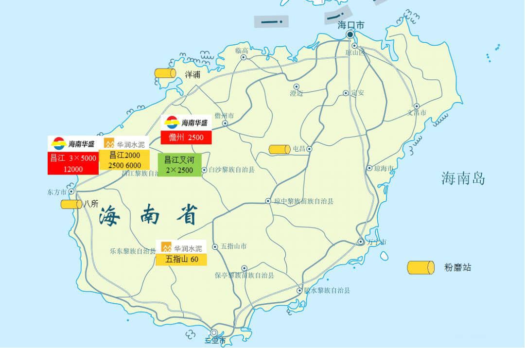 綜合來看, 海南島內(nèi)主要生產(chǎn)企業(yè)為華盛天涯、華潤水泥及昌江鴻啟等。
