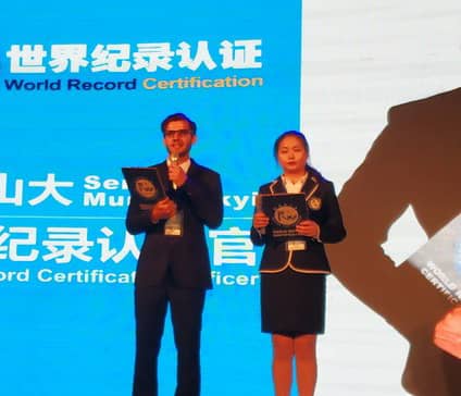 世界紀(jì)錄認(rèn)證官亞歷山大公布頒發(fā)證書
