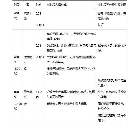 煤粒徑越小,燃燒速度越快,燃盡率越高。粒徑 100 微米 1.5S 燃盡,88 微米 1.3S 燃盡。