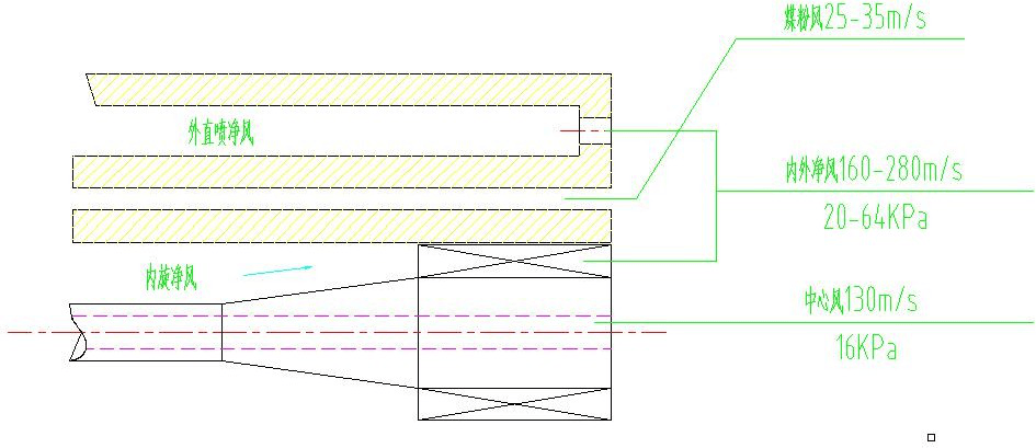 (1) 所有類型的噴煤管(三通、四通、多通)都是大速差同向射流夾層燃燒原理。 沒有另類。其余都是制造商宣傳的賣點而已。
