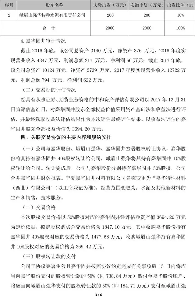 轉(zhuǎn)讓完成后,公司與嘉華股份分別持有嘉華固井50%股權(quán),公司合并嘉華固井財(cái)務(wù)報(bào)表。本次收購(gòu)將拓展新的銷售渠道,提升公司特種水泥市場(chǎng)競(jìng)爭(zhēng)能力。公告原文如下: