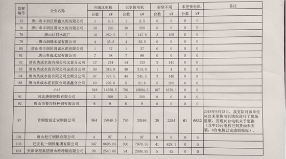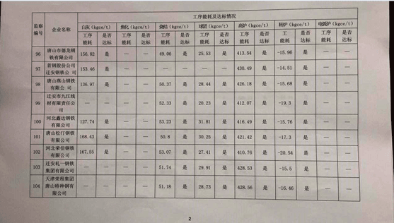 唐山市發(fā)改委發(fā)布《關(guān)于對唐山市2018年度鋼鐵水泥行業(yè)能耗及達(dá)標(biāo)情況的通報》(下簡稱《通報》)。《通報》指出唐鋼集團、唐鋼不銹、首鋼遷鋼等37家鋼鐵企業(yè)白灰、焦化、燒結(jié)、球團、高爐、轉(zhuǎn)爐、電弧爐工序能耗全部達(dá)標(biāo),唐山市玉田金州實業(yè)、唐山安泰鋼鐵、唐山津西鋼鐵集團正達(dá)鋼鐵、唐山貝氏體鋼鐵(集團)公司、唐山貝氏體鋼鐵(集團)福豐鋼鐵、唐山市清泉鋼鐵集團6家鋼企停產(chǎn)。