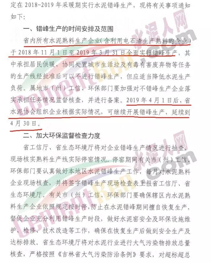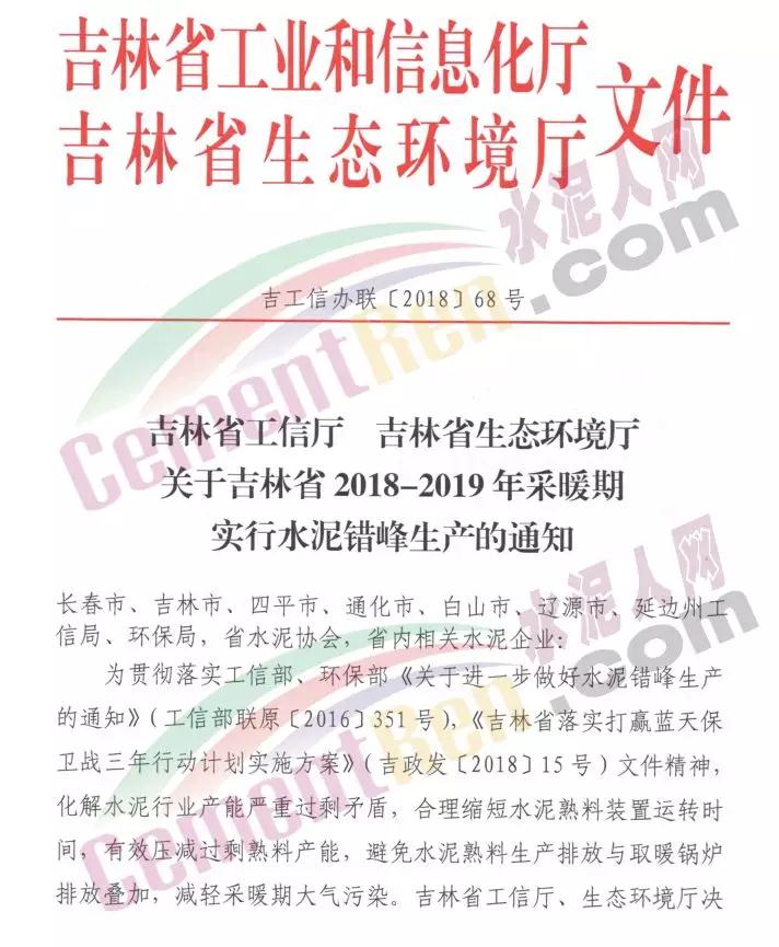據(jù)水泥人網(wǎng)了解,近日吉林省工信廳、生態(tài)環(huán)境廳聯(lián)合發(fā)布《關(guān)于吉林省2018-2019年采暖期實(shí)行水泥錯(cuò)峰生產(chǎn)的通知》(以下簡(jiǎn)稱“通知”),通知明確要求,省內(nèi)所有水泥熟料生產(chǎn)企業(yè)(含利用電石渣生產(chǎn)熟料的企業(yè))于2018年11月1日至2019年3月31日全面實(shí)行錯(cuò)峰生產(chǎn),其中承擔(dān)居民供暖、協(xié)同處置城市生活垃及有毒有害廢棄物等任務(wù)的生產(chǎn)線經(jīng)批準(zhǔn)后可以不進(jìn)行錯(cuò)峰生產(chǎn),但應(yīng)適當(dāng)降低水泥生產(chǎn)負(fù)荷。屬地市(州)工信、環(huán)保部門要加強(qiáng)對(duì)不錯(cuò)峰生產(chǎn)企業(yè)落實(shí)承擔(dān)任務(wù)情況監(jiān)督核查,并進(jìn)行備案。2019年4月1日后,省水泥協(xié)會(huì)組織企業(yè)根據(jù)實(shí)際情況,可繼續(xù)開展錯(cuò)峰生產(chǎn),延續(xù)到4月30日。